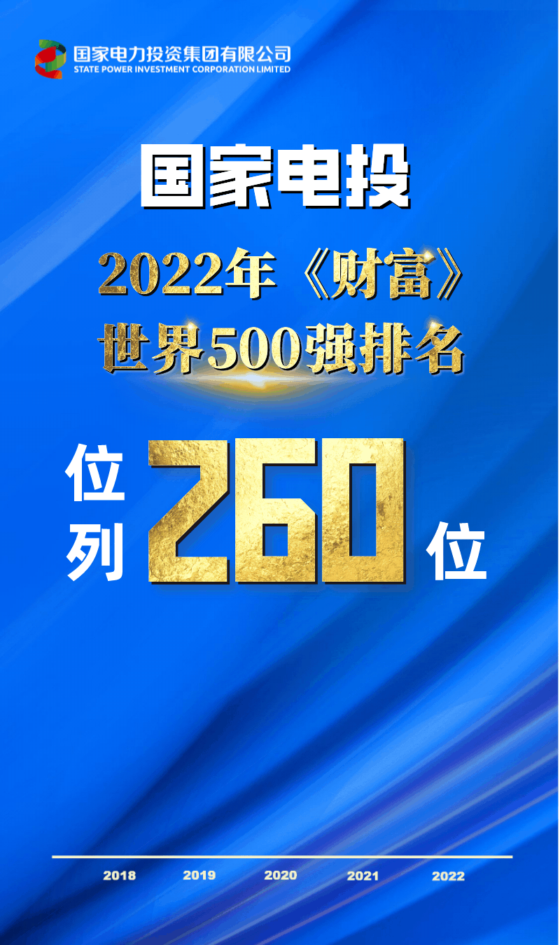 8月3日,2022年《財富》世界500強揭曉,國家電投位列第260位,較上年上升33位,連續11年進入世界500強!