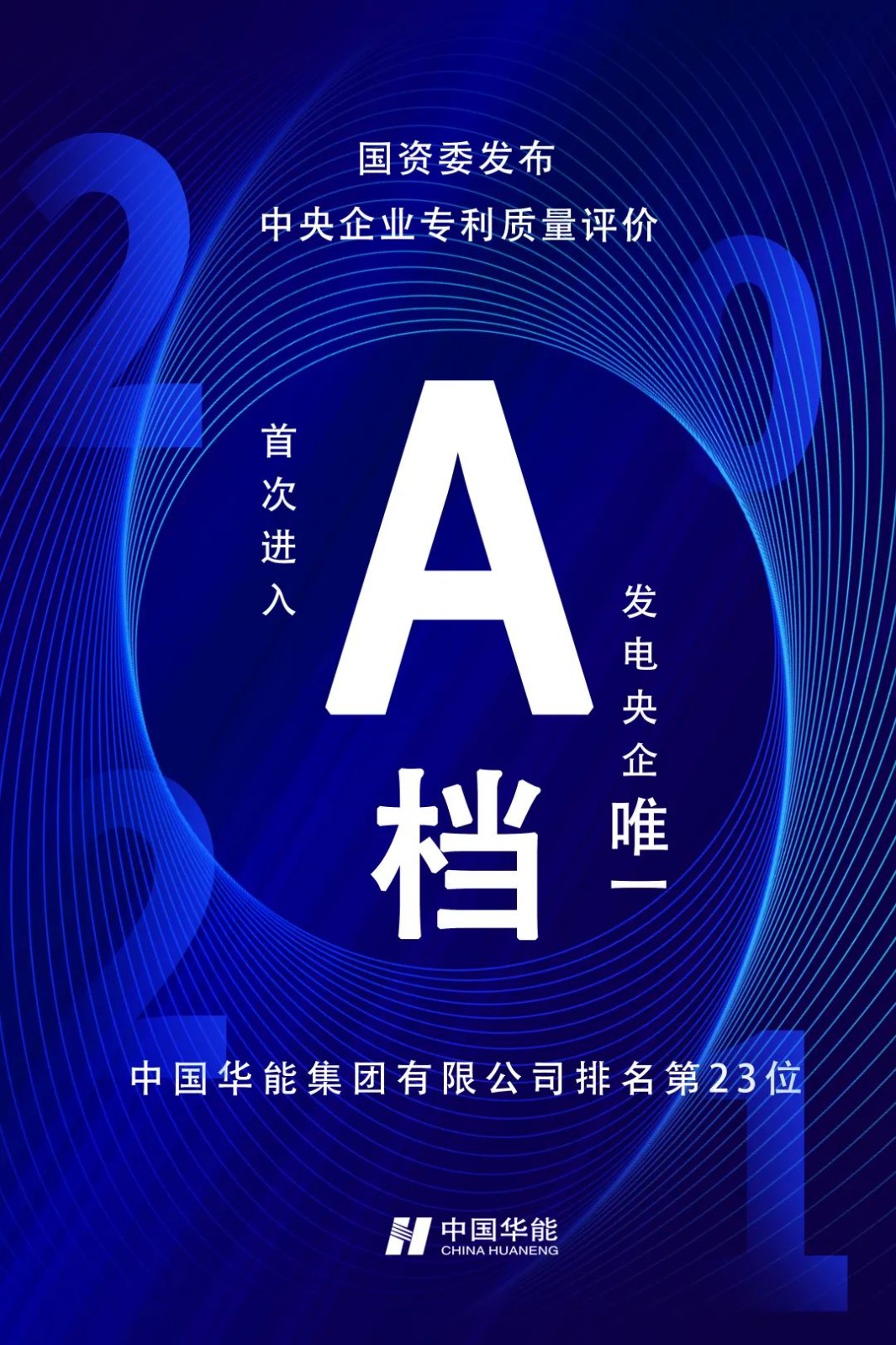 國資委發布2021年度中央企業專利質量評價結果,中國華能集團有限公司排名第23位,首次進入A檔,是發電行業央企中唯一進入A檔的企業。