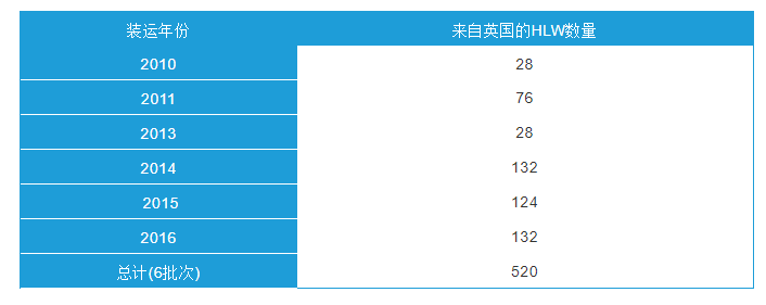 從英國到日本的玻璃化HLW運輸始于2010年初,需要在8-10年內運送約11批,運送約900罐。