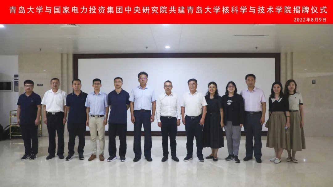 8月9日,青島大學與中央研究院共建的青島大學核科學與技術學院揭牌儀式在青島舉行。中央研究院黨委書記、董事長范霽紅出席,并與青島大學校長夏東偉共同為學院揭牌,青島大學常務副校長于永明參加活動。