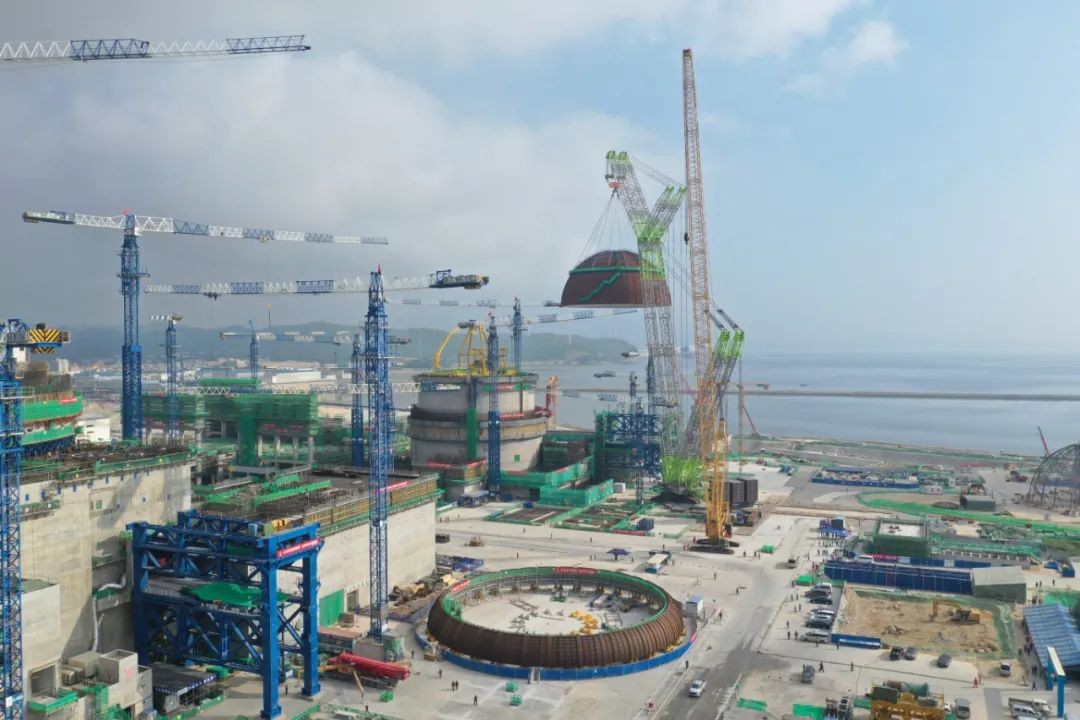 8月23日,我國自主三代核電華龍一號批量化工程——中核集團漳州核電2號機組內穹頂提前成功吊裝,創下了“開頂法”實施前提下華龍一號單臺機組從FCD到內穹頂吊裝工期最短的新紀錄,標志著該機組從土建施工階段全面轉入設備安裝階段,華龍一號批量化建設邁出堅實步伐。