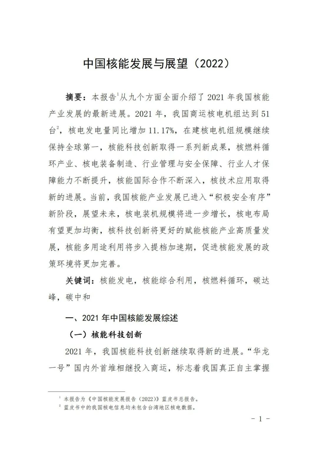 本報告從九個方面全面介紹了2021年我國核能產業發展的最新進展。
