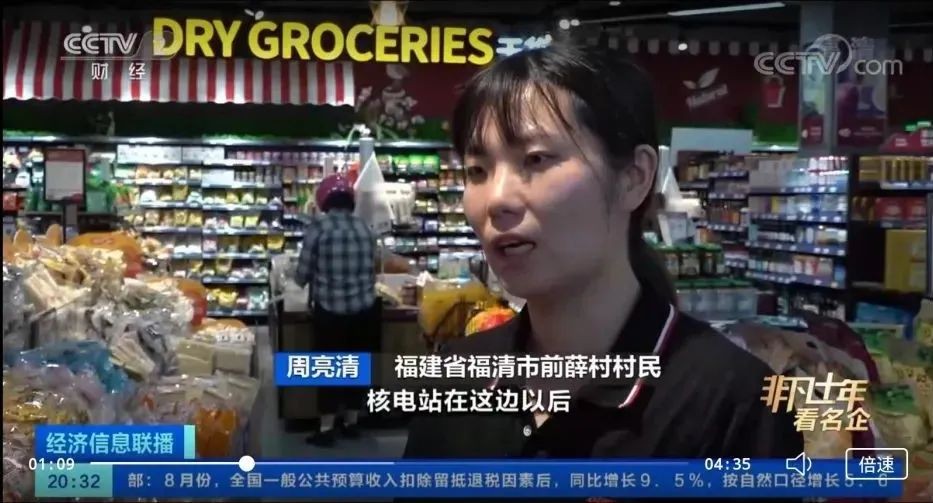 2015年5月7日,全球首臺自主核電華龍一號核電機組在福清開始建設(shè),到2021年正式投入商業(yè)運行。核電站所在的前薛村一下子就熱鬧起來,當(dāng)?shù)卮迕裰芰燎鍍煽谧右不氐搅思亦l(xiāng),丈夫去核電上班,周亮清開了一家超市。