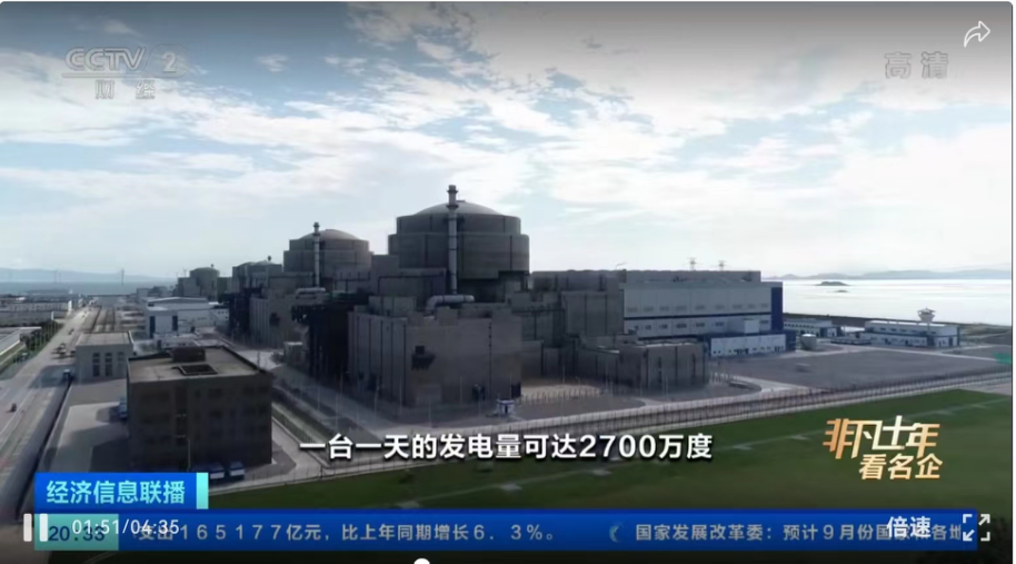 中核集團福清核電6號機組值長王瑋介紹,我國自主三代核電技術(shù)華龍一號,一臺一天的發(fā)電量可達2700萬度,有效保障了居民和生產(chǎn)用電,緩解了華東地區(qū)電力供需緊張的局面。
