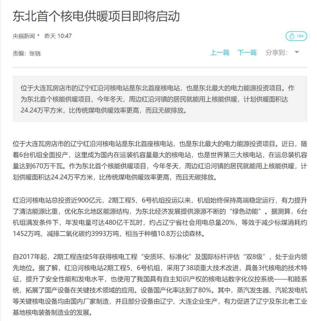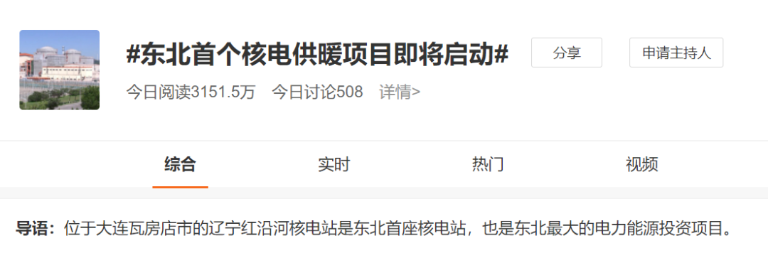 話題#東北首個核電供暖項目即將啟動#在網絡上引起了大伙兒的熱烈討論......