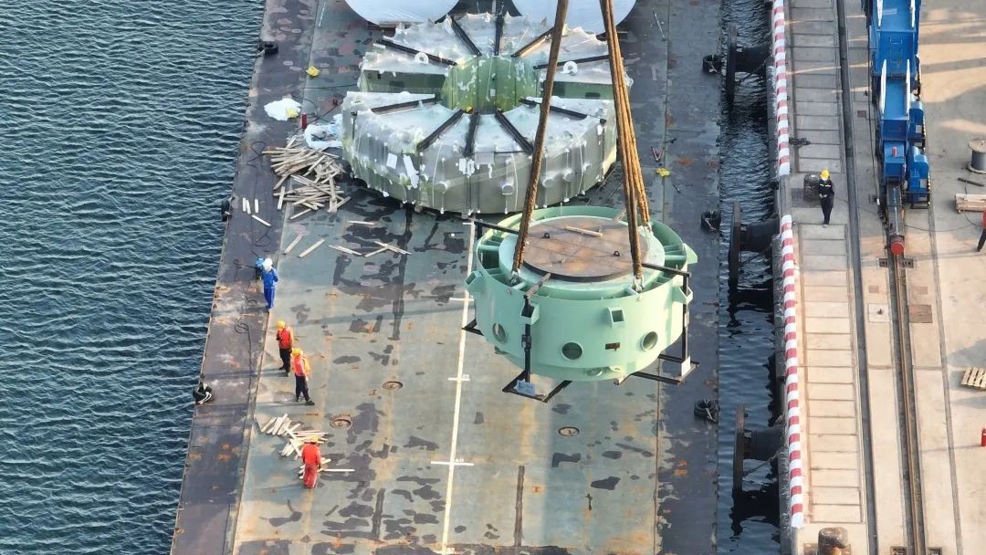 在中核集團和中國核電的指導下,江蘇核電對此次海運大件運輸任務精心策劃,通過協調加快工程制造進度、優化現場施工邏輯、協調運輸方優化船舶航行計劃等措施,實現與徐大堡3、4號機組同批設備合并裝船的目標,最大程度降低海運風險,提高船舶利用率。整個航運過程采取嚴加管控措施,確保設備安全抵達。