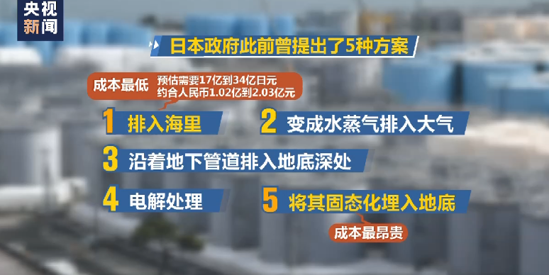 目前,福島第一核電站核污染水全部?jī)?chǔ)存在核電站的儲(chǔ)存罐內(nèi),對(duì)于如何處理這些核污染水,日本政府此前曾提出了5種方案:排入海里、變成水蒸氣排入大氣、沿著地下管道排入地底深處、電解處理以及將其固態(tài)化埋入地底。