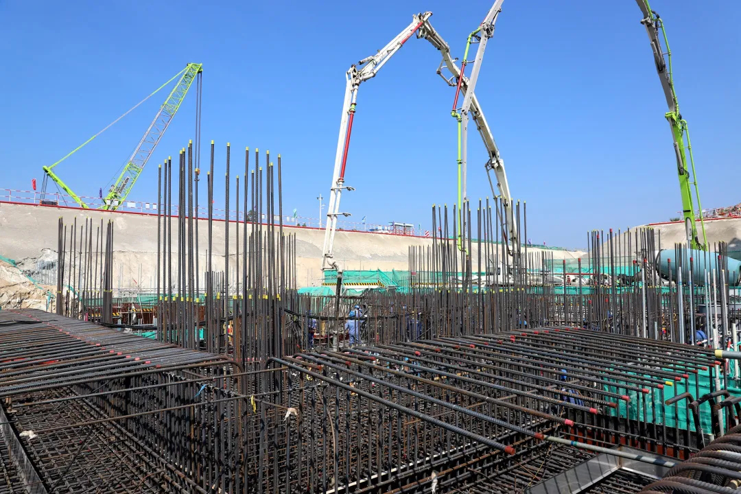 2021年11月29日“玲龍一號”汽輪機廠房筏基基礎底板混凝土澆筑完成