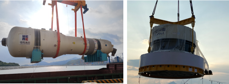 10月11日晚間7時許,太平嶺核電一期工程1RPV(反應堆壓力容器)和1SG1(1環路蒸汽發生器)順利完成卸船、場內運輸,進入太平嶺核電基地主設備倉庫。至此,太平嶺核電1號機組核島主回路反應堆壓力容器及蒸汽發生器全部運抵現場,又一個工程建設“小目標”順利達成。