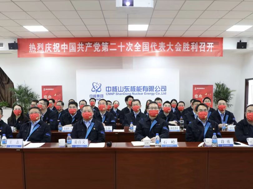 中國核電要求,本部和各成員單位在組織黨員干部群眾收聽收看大會系列報道的同時,要迅速組織學習討論,不斷提升認識,確保把思想統一到黨的二十大精神上來,始終在思想上政治上行動上同以習近平同志為核心的黨中央保持高度一致。把學習貫徹黨的二十大精神同貫徹落實黨中央決策部署結合起來,同落實中核集團黨組、中國核電黨委各項工作任務結合起來,把學習成果轉化成為謀劃發展的思路、攻克難題的舉措、推動工作的實效,以黨的二十大精神引領中國核電事業續寫新的輝煌。