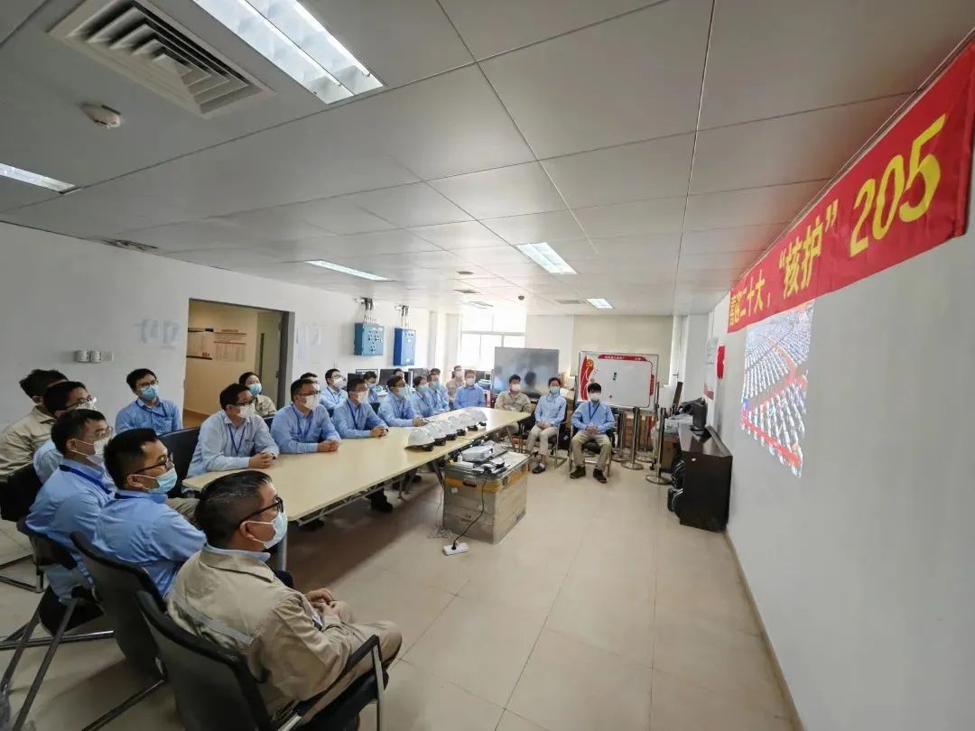 海南核電玲龍一號建設者在工程現場收看大會盛況
