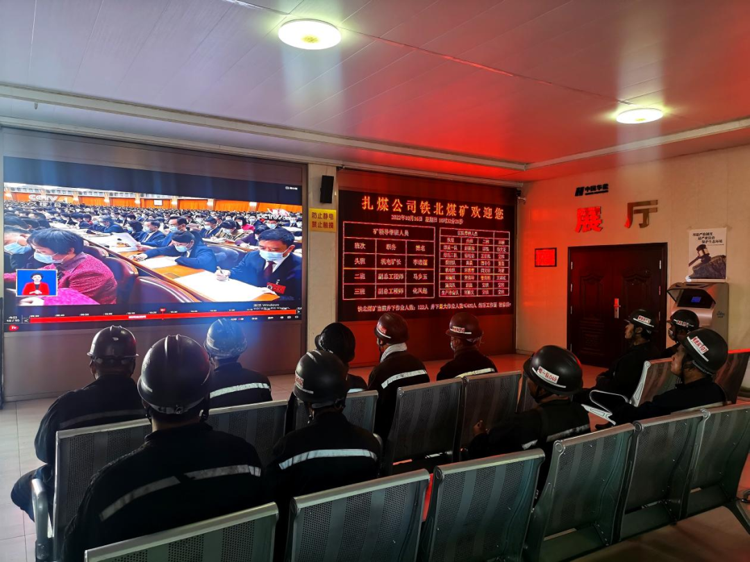 扎煤鐵北礦20名一線職工下夜班升井后,在候車室認真收看黨的二十大開幕會直播。大家表示,要把學習貫徹黨的二十大精神與破解難題共謀發展相結合、與抓實安全生產經營工作相結合,把思想和行動統一到黨的二十大精神上來,確保黨的二十大精神在礦區落地生根。
