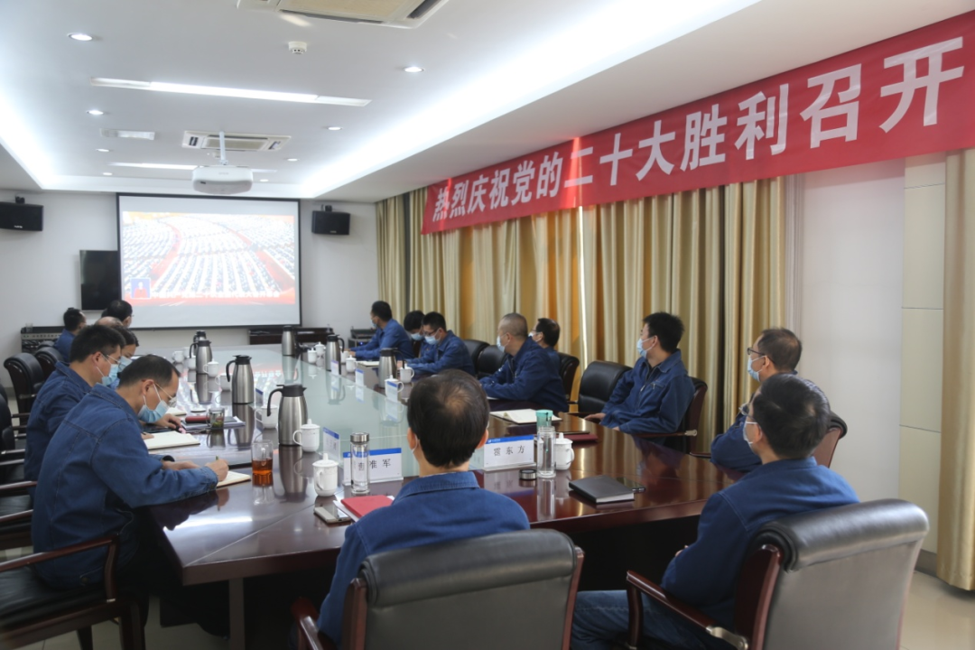 股份公司領導班子成員及部門負責人在本部會議室收看黨的二十大開幕會直播。與會同志表示,要以實際行動貫徹落實黨的二十大精神,有計劃分步驟實施碳達峰行動,大力推動新能源跨越式發展,推動煤電結構優化升級。