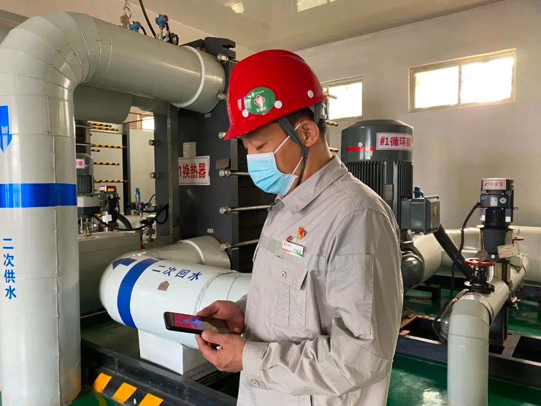 河北公司(雄安公司)熱力公司運行專工畢振華在柏南換熱站收看黨的二十大開幕會。