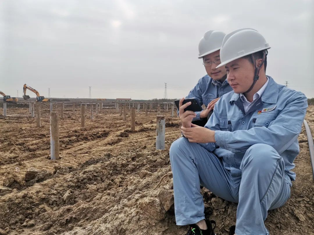 山東分公司壽光侯鎮100兆瓦漁光互補項目試樁工作現場,