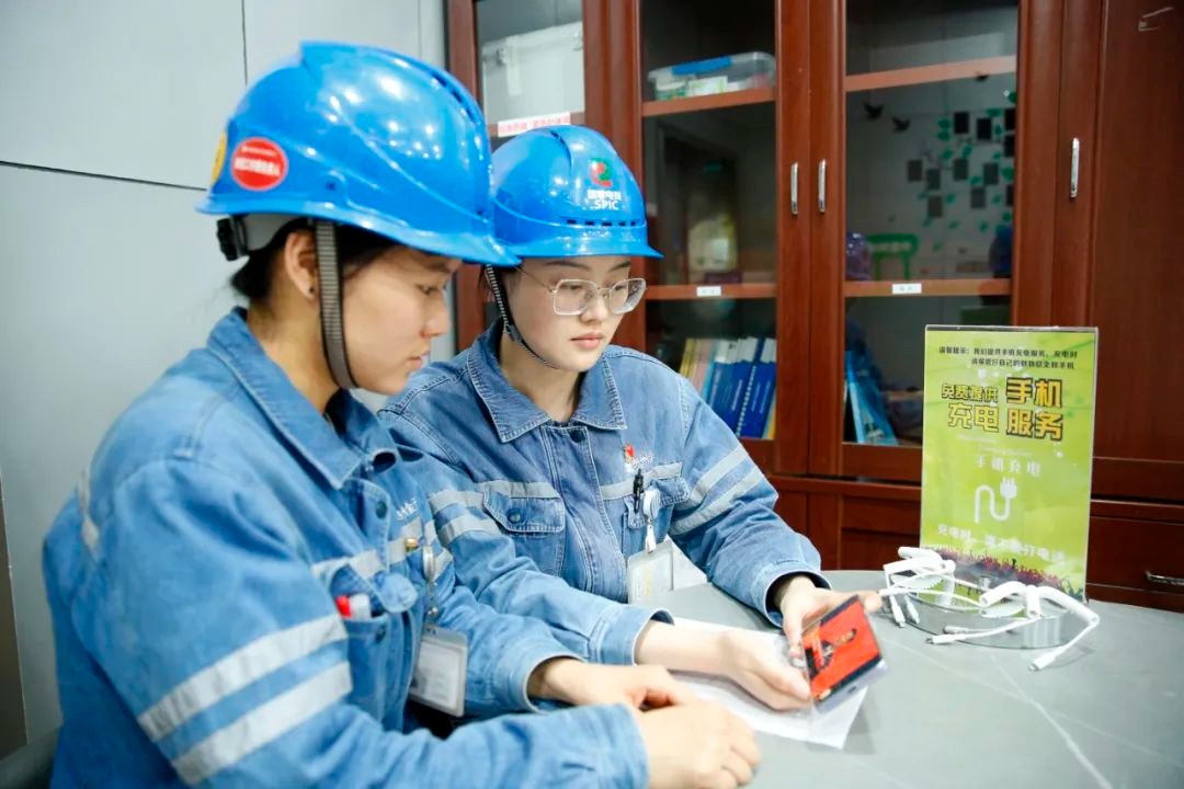河南公司沁陽發電分公司設備維護部汽機專業維護工王偉良與同事收看黨的二十大開幕會。