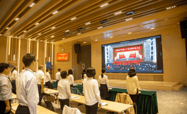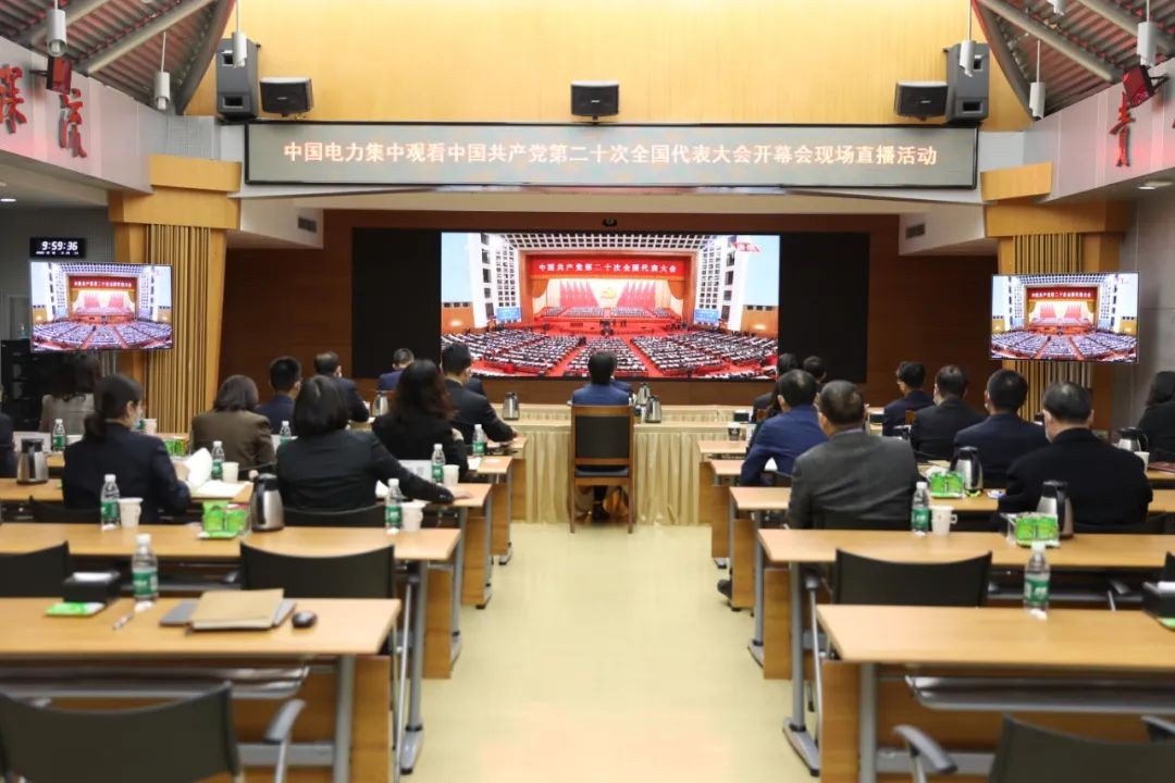 中國電力黨員干部、員工收看黨的二十大開幕會。