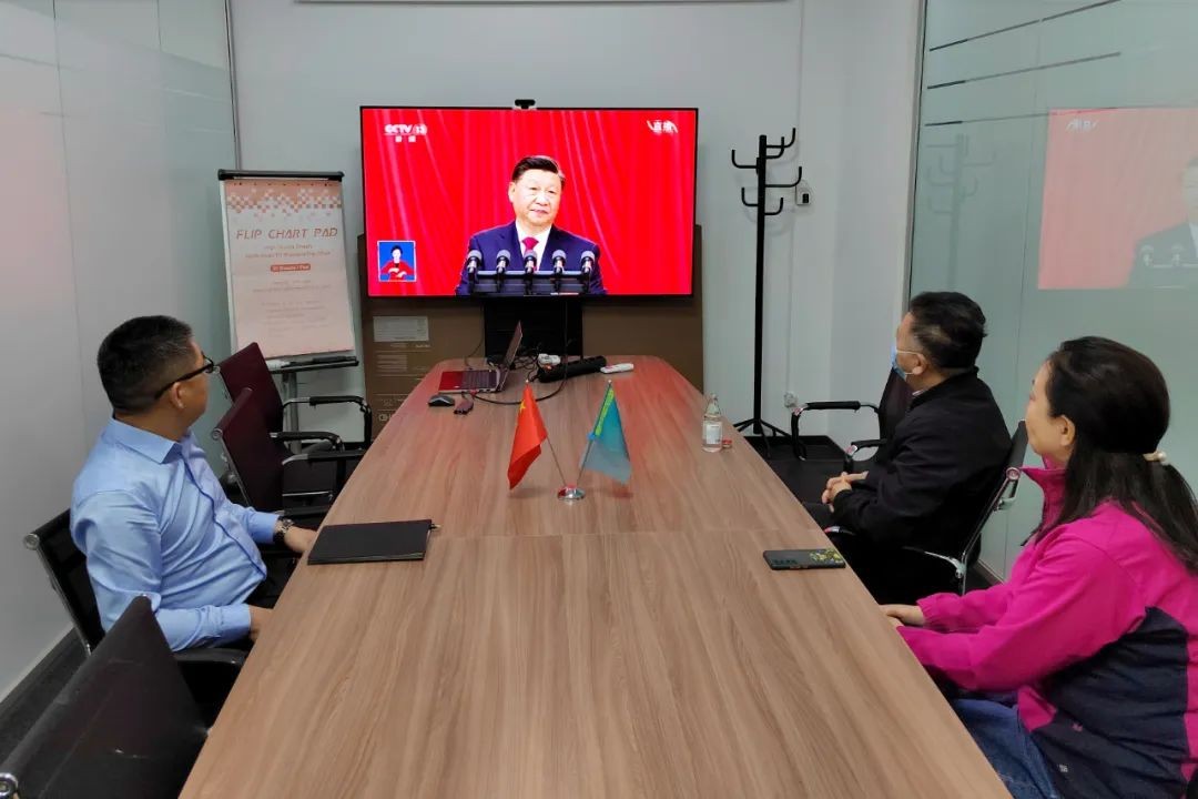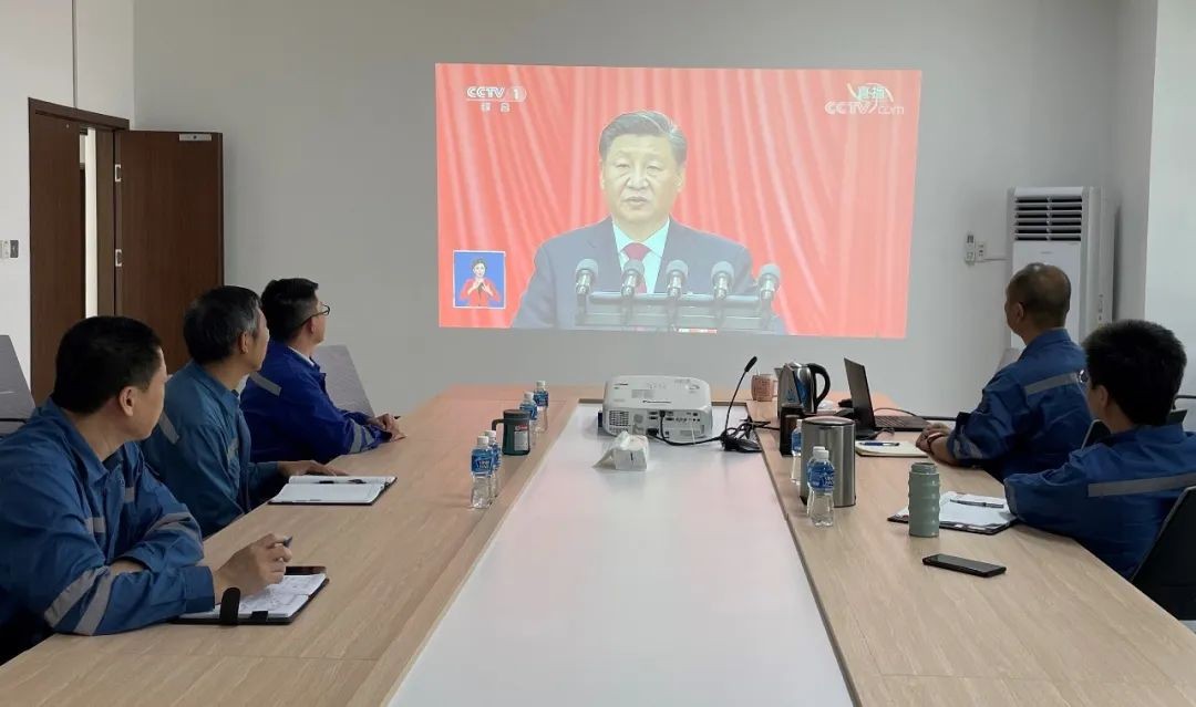 巴基斯坦中電胡布干部員工收看黨的二十大開幕會。