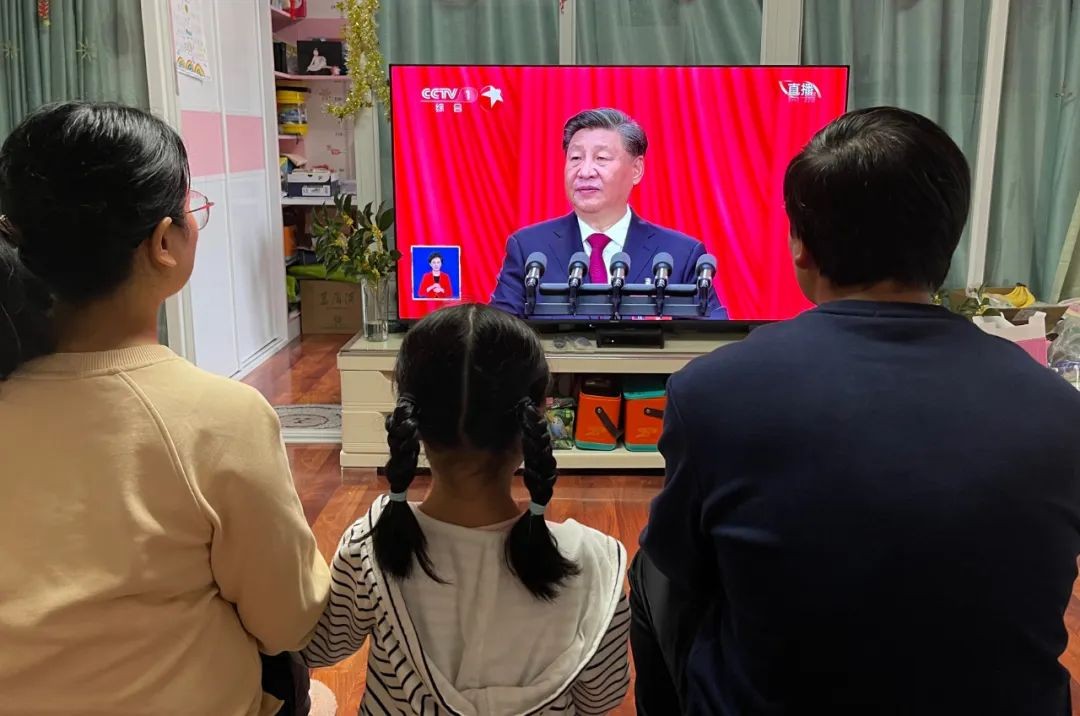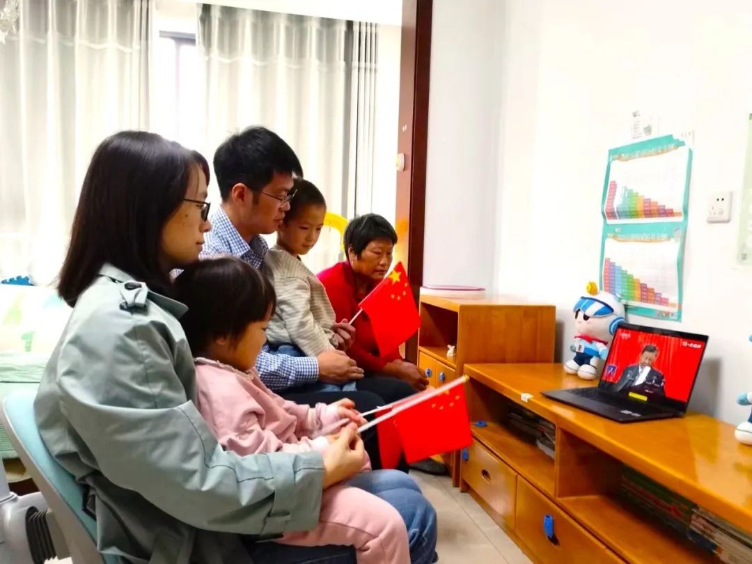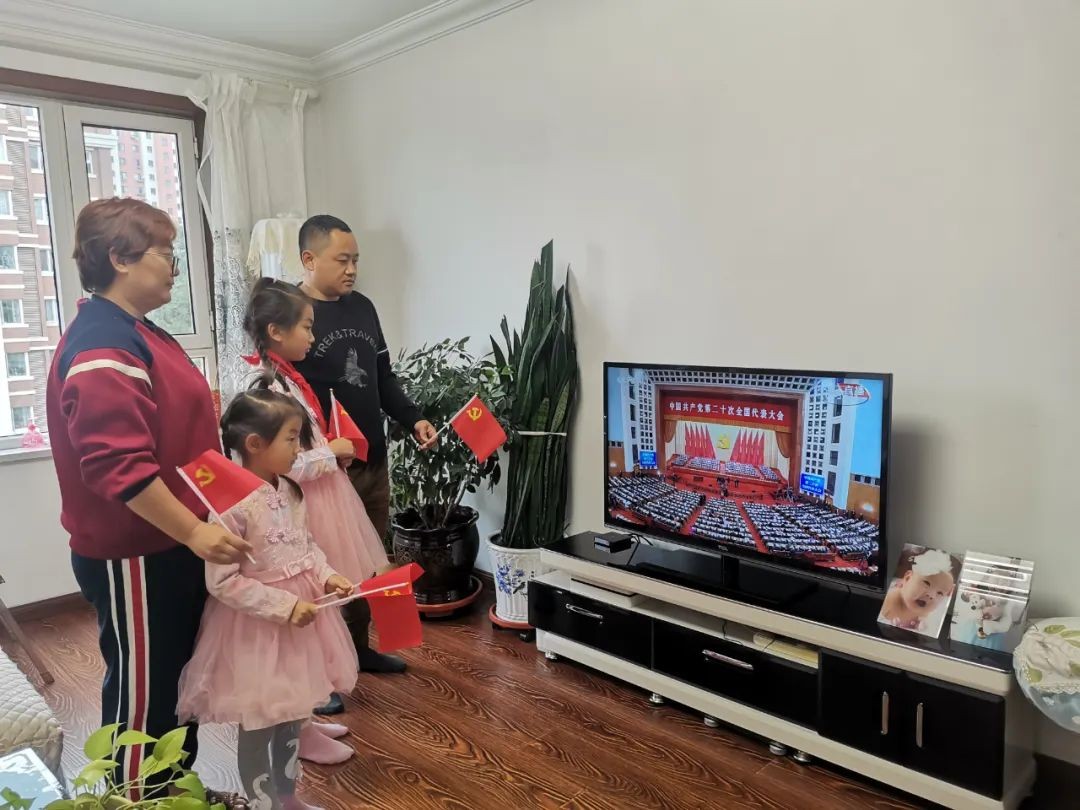 國核浙能員工樊迎春同家人一道,收看黨的二十大開幕會,帶孩子們上了一堂高質量的愛國主義教育課。