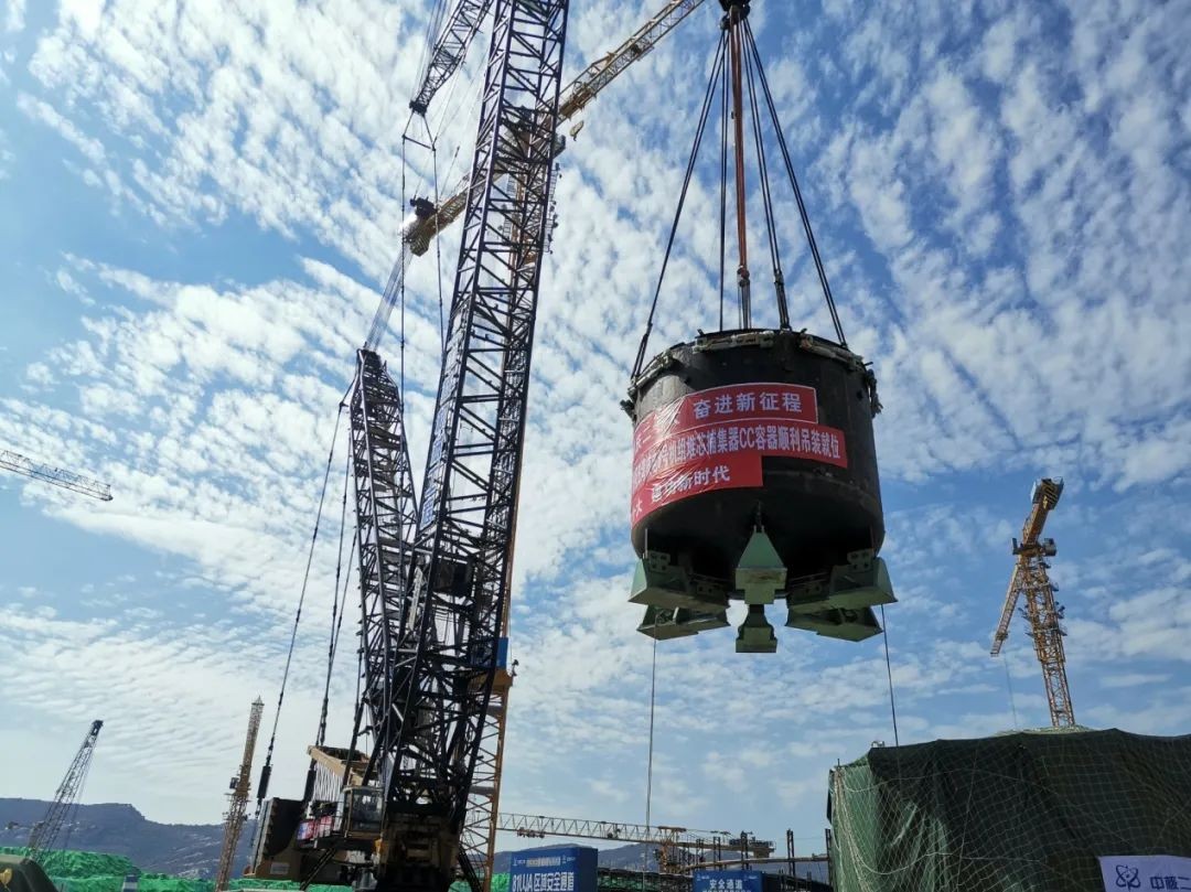 在各單位通力協作下,田灣項目部工程和設備部門默契配合,整個運輸及轉運、吊裝工作安全、高效、順暢推進,8號機組堆芯捕集器容器吊裝就位,為中核工程EPC管理模式再續華章,以工程建設優異成績獻禮黨的二十大。