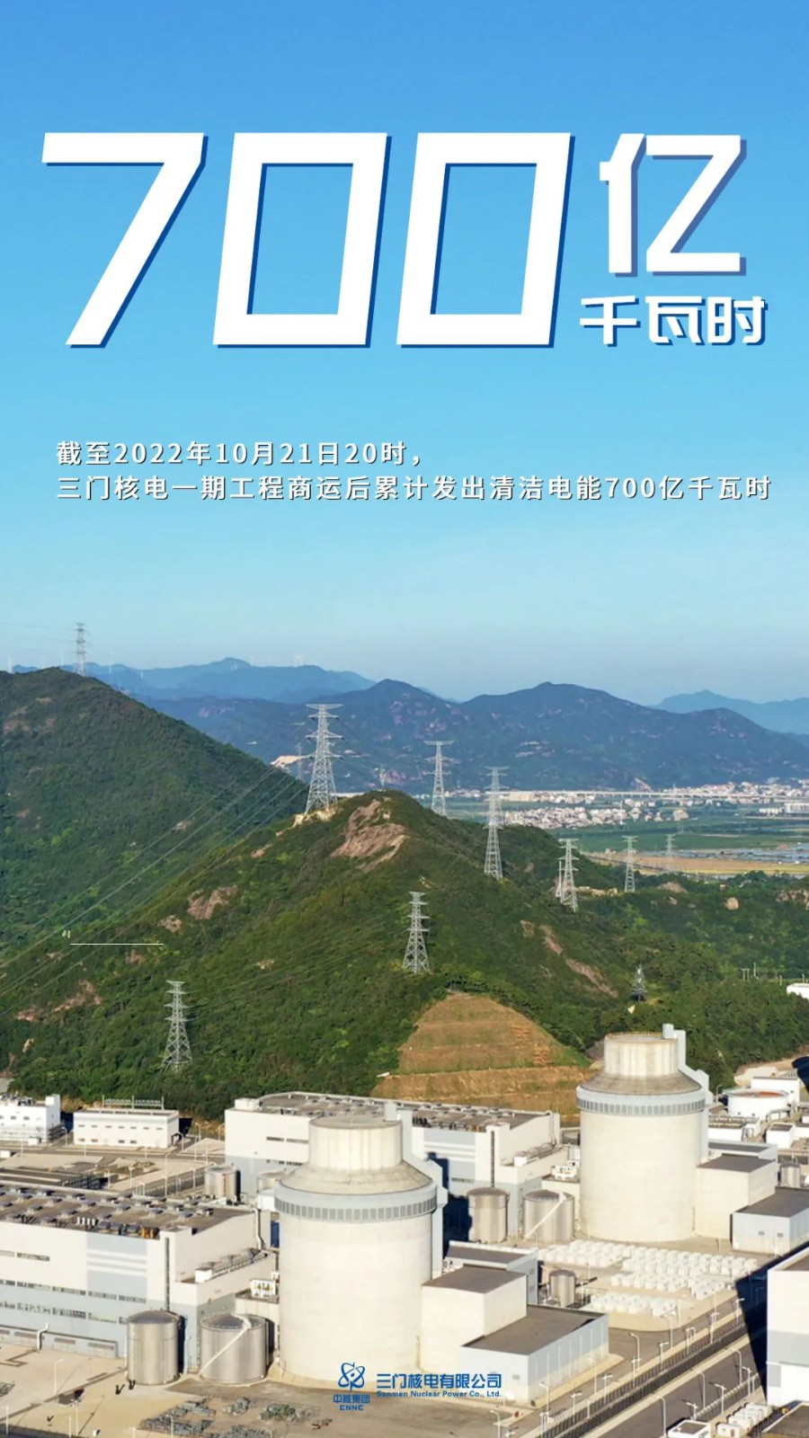 截至昨日20時,三門核電一期工程商運后累計發出清潔電能700億千瓦時!