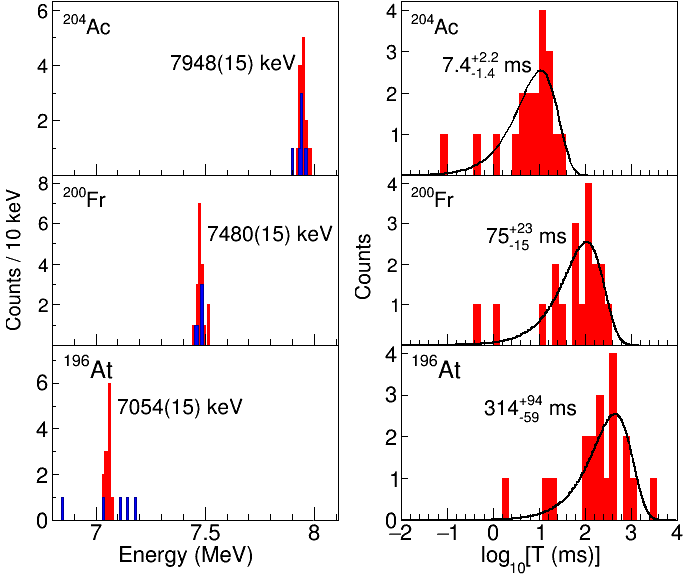 圖 錒-204及其衰變后的子核、孫核發(fā)射α粒子的能量與時(shí)間分布。圖| 黃明輝