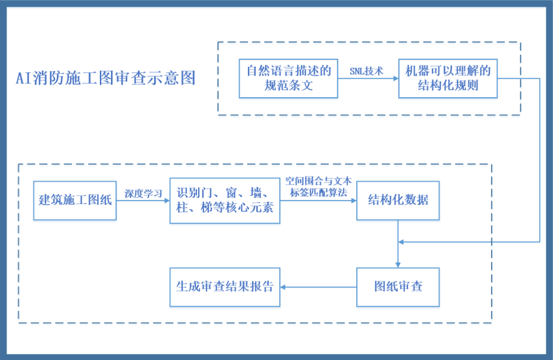 在實施過程中,施工大數據平臺完成了對核電領域實際工程圖的AI審圖應用驗證,重現了前期核電施工圖消防審查過程常犯、易犯的問題,并發現了與人工審查不一致的問題,體現了AI審圖技術的應用效果。AI施工圖審查與核電施工大數據平臺的全面集成和融合,創新性地解決了對“圖紙大數據”如何管理、價值如何挖掘、如何貫通應用的問題,助力施工管理精益求精。