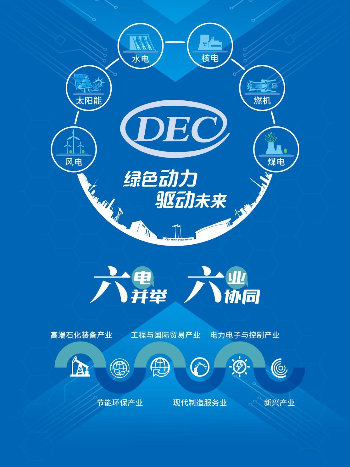 東方電氣是中國電力驅動時代的先驅者之一,成長于三線建設,發展于改革開放,壯大于新的時代,孕育了“東汽精神”,始終牢記習近平總書記殷殷囑托,不忘產業報國初心,牢記制造強國使命,以“綠色動力、驅動未來”為己任,堅持科技自立自強,完整、準確、全面貫徹新發展理念,瞄準碳達峰、碳中和目標,大力實施“11256”發展戰略,加快推進“綠色智造”轉型,形成了“六電并舉、六業協同”的產業格局[“六電”:風電、太陽能、水電、核電、燃機、煤電;“六業”:高端石化裝備產業、節能環保產業、工程與國際貿易產業、現代制造服務業、電力電子與控制產業、新興產業],產品包括風電機組、太陽能發電設備、水電機組、核電機組、火電機組(燃氣輪機發電、清潔高效煤電)、控制系統、環保設備、工業化工裝備、氫能及燃料電池、儲能裝備、新材料等,致力于為客戶提供能源裝備、綠色低碳裝備、高端智能裝備于一體的綜合能源解決方案。