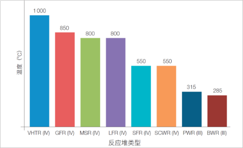 核能制氫的技術(shù)路線可分為核電制氫(機(jī)組為制氫提供電能)、核熱制氫(機(jī)組為制氫提供熱能)和電熱混合制氫(機(jī)組為制氫提供熱能和電能)三種。能夠與制氫工藝耦合的反應(yīng)堆有多種選擇, 但從制氫的角度來看, 制氫效率與工作溫度密切相關(guān),高溫 ( 出口溫度700-950℃ ) 和超高溫反應(yīng)堆( 出口溫度950 ℃以上) 是最優(yōu)選擇。