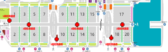 展館內核酸檢測點位置如下圖所示,為了保障次日更便捷進館,建議每天展會結束前至核酸檢測點及時進行核酸檢測。