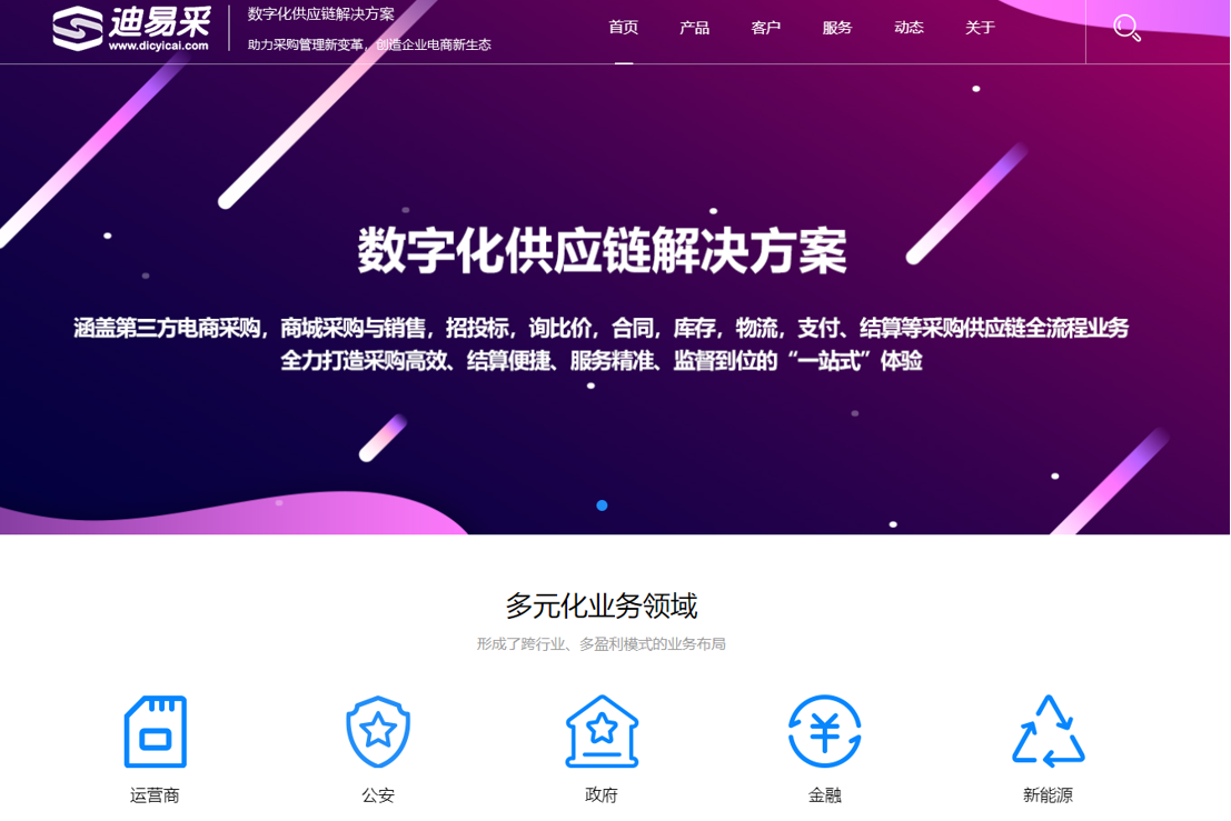 迪易采-數字化供應鏈解決方案涵蓋第三方電商采購、商城采購與銷售、招投標、詢比價、合同、庫存、物流、支付、結算等采購供應鏈全流程業務,全力打造采購高效、結算便捷、服務精準、監督到位的“一站式”體驗。