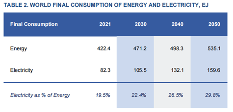 全球總發電量將從2021年的27萬億千瓦時增至2030年33.3萬億千瓦時、2040年41.5萬億千瓦時和2050年50.1萬億千瓦時。