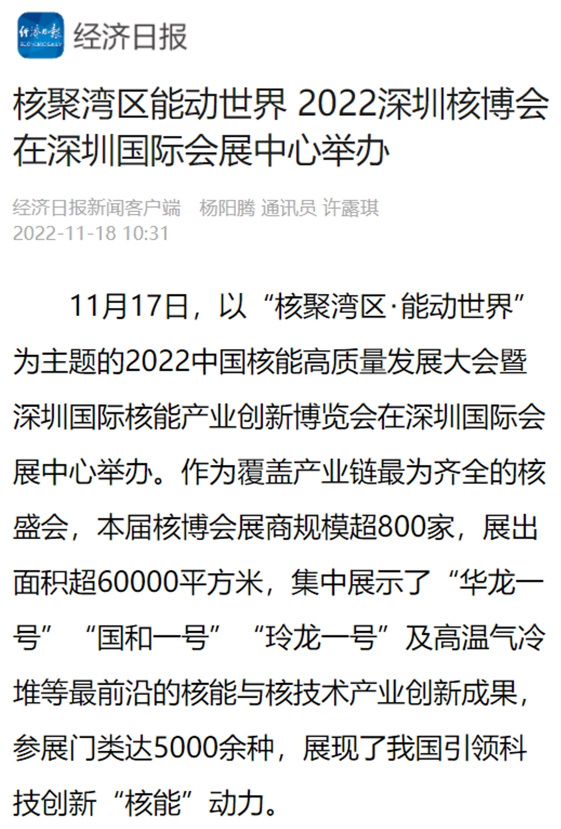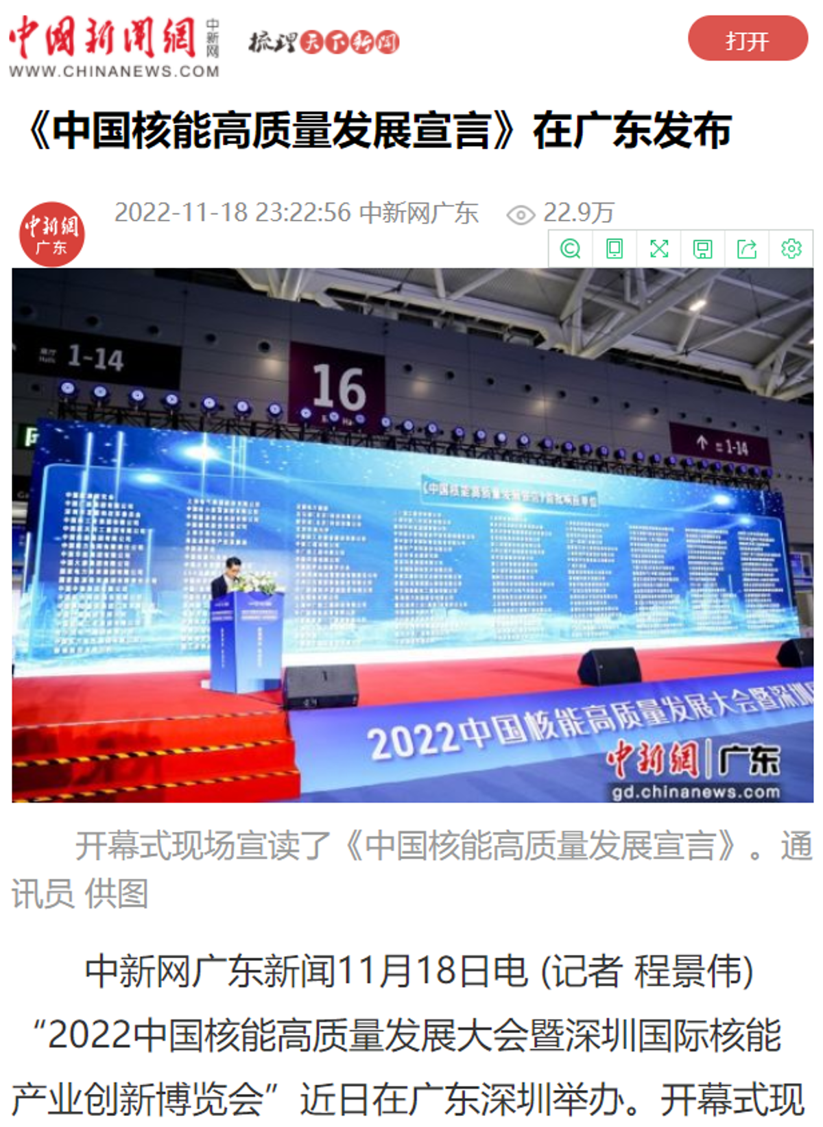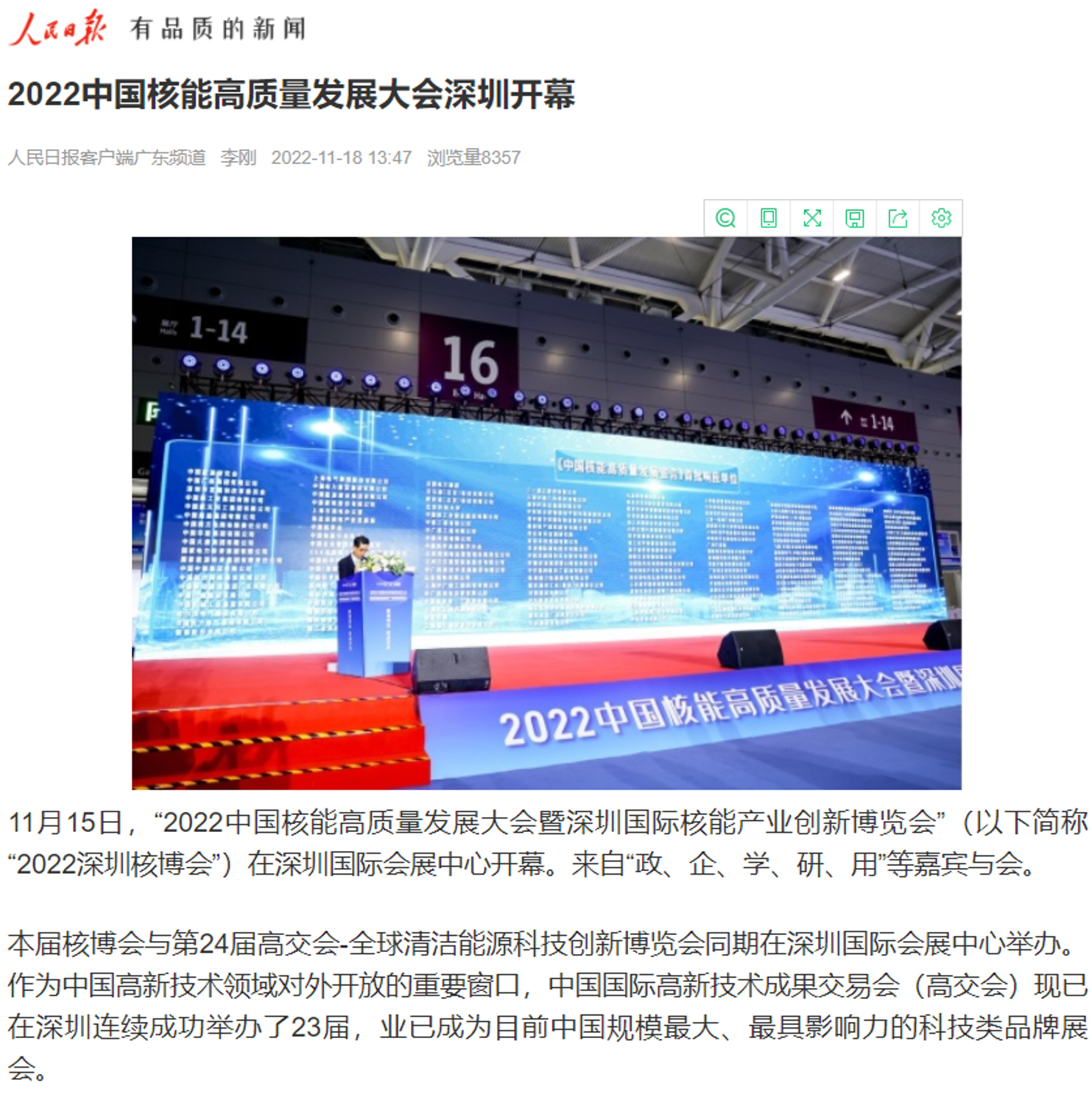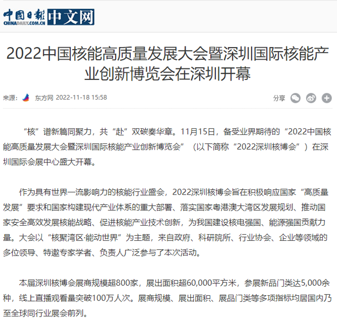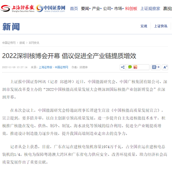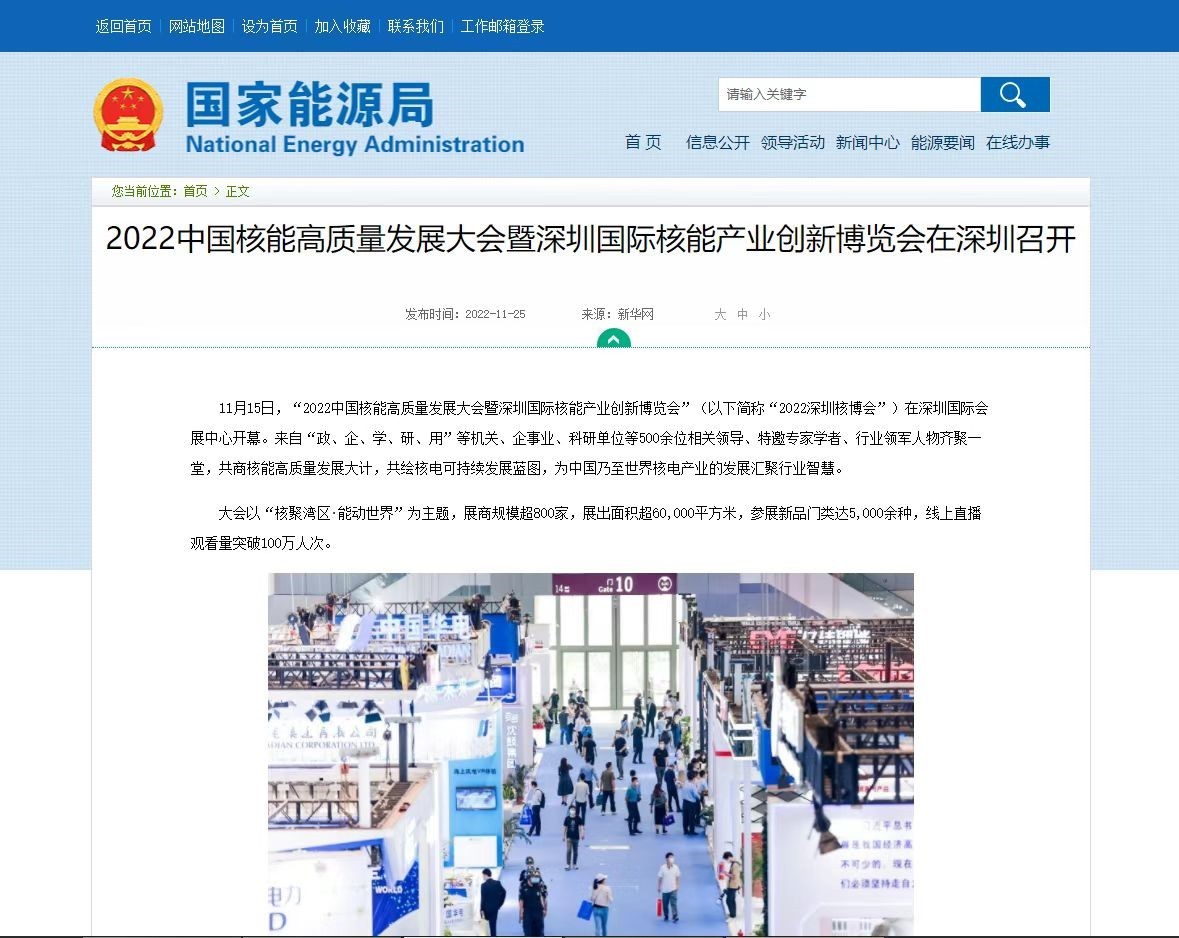 會后,國家能源局官網報道和宣傳了本屆深圳核博會的盛況,并予以高度評價。