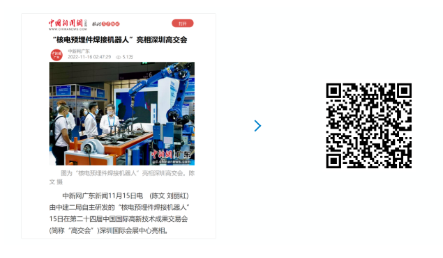智能建造推動核電“智”造。現(xiàn)場展出的“埋件焊接機器人”由中建二局研發(fā),主要針對核電項目核島施工中標準預埋件數(shù)量居多、焊接工作量巨大這一施工難題,該設備整體由焊接機器人和固定工作臺兩部分組成,能夠實現(xiàn)自動定位、智能焊接。相比人工焊接,該設備的應用效率提升了三倍,大大降低了對焊工的需求。
