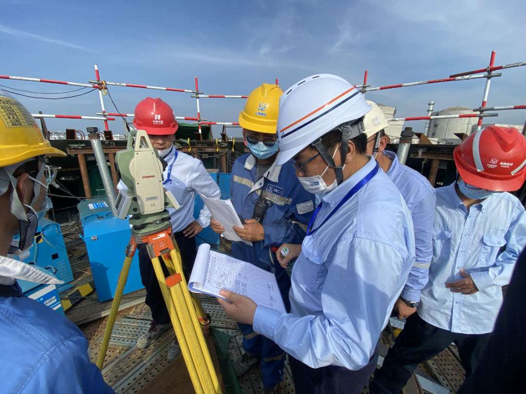 為確保3號機組內穹頂移交節點目標順利實現,昌江核電與海南核電及各相關方成立海南昌江核電3號機組內穹頂鋼結構專項小組,通過質量計劃管控、開展專項監督及定期召開例會制度等管理措施,在中核工程公司、監理單位的有效管控下,及時協調解決內穹頂拼裝工作中遇到的問題,消除各種制約因素帶來的不利影響,同時也在中核二二鋼結構單位的密切配合下,不等不靠,充分發揮攻堅克難的精神,克服疫情防控、前期焊工不足、現場探傷制約等重重困難,確保相關工作得到統一部署、整體安排、有序實施,并滿足后續三級進度計劃內穹頂吊裝節點要求。