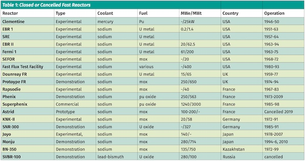 20世紀60年代和70年代,美國和歐洲,特別是英國、法國和德國,對FNR的熱情與日俱增(見表1)。