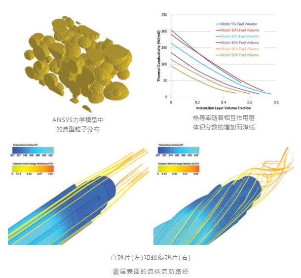 【案例描述】:Ansys Mechanical評估低鈾燃料的導熱系數,Ansys Fluent模擬三種傳熱模式:對流、傳導和輻射。數值模擬預測可為候選燃料設計的性能和安全性分析提供支持,在不同的功率和入口流量條件下觀察到的趨勢將有助于優化物理實驗的性能和安全性。