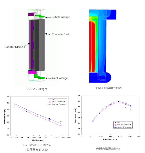 【案例描述】:通過ANSYS Fluent對用于乏燃料儲存和運輸的VSC-17系統的傳熱性能建模,燃料棒產生的熱量通過自然對流流動傳遞,計算溫度值和實驗溫度值一致性良好。