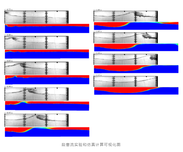 【案例描述】:段塞流是水平管道中常見的一種多相流狀態,液體間斷地充滿管道橫截面積。液塞攜帶著顯著的能量,加上其強烈的振蕩壓力,對管線系統的結構有很大的威脅。實驗過程中分別控制空氣和水的流量。根據不同的流速,可以觀察到不同的流態,包括分層流(平滑和波浪狀)、段塞流和長氣泡流。使用完整的歐拉-歐拉(非均勻)多相模型,在段塞形成、前進速度和破斷方面,仿真計算數據與實驗的結果定性上保持一致。