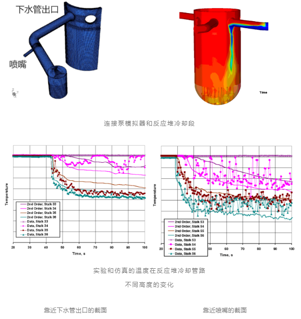 【案例描述】:堆芯冷卻時緊急注入冷水發生的壓熱沖擊威脅反應堆壓力容器壽命,當冷水與壓力容器壁接觸時,可能會導致較大的溫度梯度,從而導致容器壁的高應力。利用Ansys CFX軟件對冷卻管路的復雜湍流混合分層現象進行了準確預測。冷卻管路的最低溫度是決定熱沖擊嚴重程度的重要因素,其計算值與實驗值誤差在3%以內。