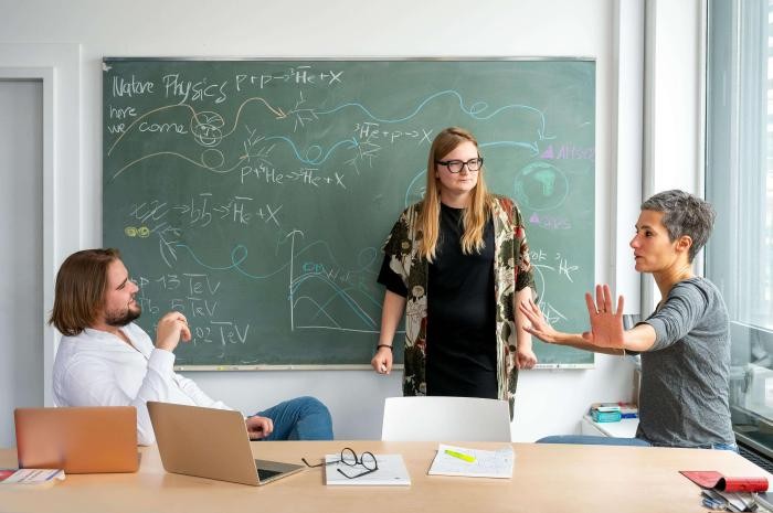 論文作者團隊的科研人員在討論反氦-3相互作用的實驗(圖源Astrid Eckert)。 施普林格·自然 供圖