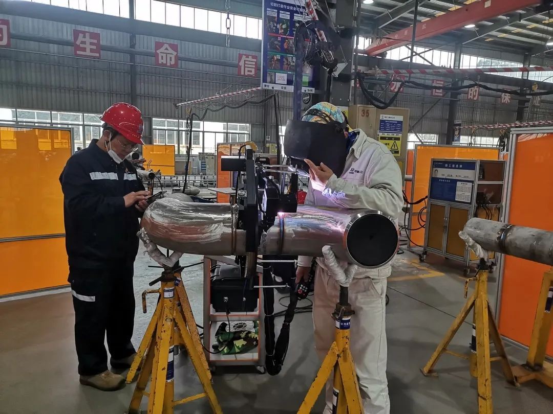 團隊謹記“實踐是檢驗真理的唯一標準”,對于自動焊而言,現場應用效果是檢驗成果轉化的最好標準。在該產品的推廣應用階段,中核設計焊接研究所研發團隊與惠州分公司技術人員團結協作,發揚鐵軍優良傳統,相繼完成設備的安裝調試、操作人員技能培訓、工藝評定制作、實施方案會審等工作,并于2022年12月3日開啟首道焊口的焊接工作。截至目前,累計焊接焊口3道,焊縫合格率100%,有效降低了層間打磨時間和焊工勞動強度,整體焊接效率比手工焊提升1.5倍,極大程度緩解了高技能焊工短缺問題。