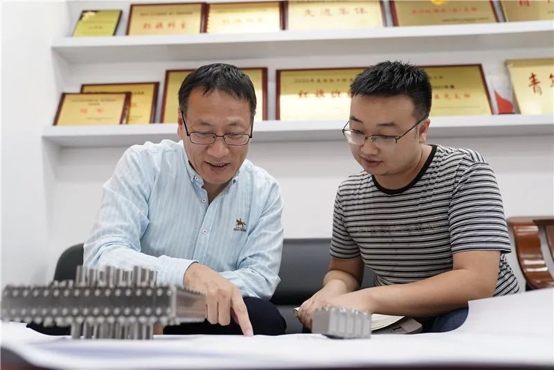 焦擁軍和同事討論工作