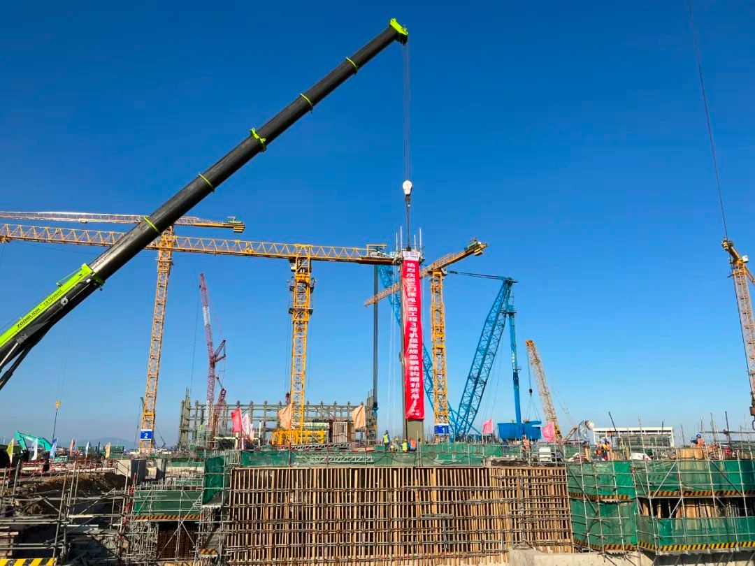 12月20日下午,三門核電二期工程現場600噸履帶吊機舒展長臂,將3號機組常規島第一根長16.7米、重21.8噸的鋼結構立柱緩緩吊起,并準確無誤地就位在預定位置上。本次吊裝作業作為3號常規島主廠房鋼結構安裝工程正式開工的起點,為后續實現常規島主廠房行車可用的里程碑節點創造了有利條件。