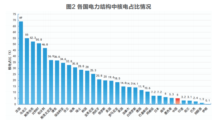 我國核電發電量為407.5太瓦時,位居世界第二,僅次于美國,但是在我國電力結構中的占比僅為5%,在全球32個有核電的國家中,我國核電占比僅排在第27位。