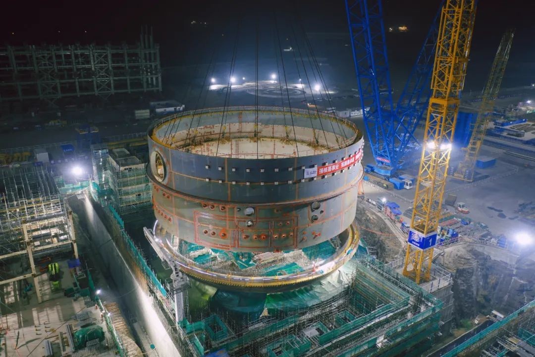 12月29日1時(shí)30分,三門(mén)核電3號(hào)機(jī)組核島鋼制安全殼(CV)筒體一環(huán)順利吊裝就位。本次吊裝的CV筒體一環(huán)直徑39.624米,高度15.554米,凈重875噸,創(chuàng)核島所有大件吊裝重量之最,為后續(xù)核島反應(yīng)堆廠(chǎng)房各類(lèi)安裝工作提供了保障。