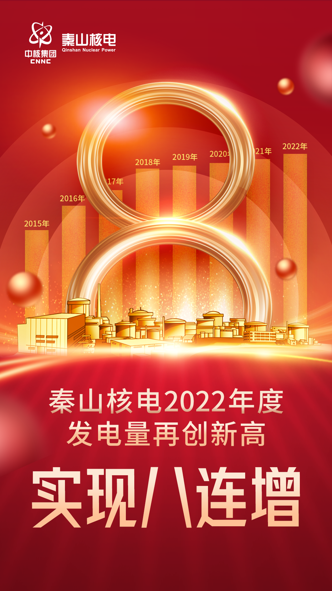 至2022年12月30日7:40,秦山核電又交出一份閃亮的運(yùn)行成績(jī)單:2022年發(fā)電量突破上年度發(fā)電量,再次創(chuàng)造新紀(jì)錄,自全面建成投產(chǎn)以來(lái)實(shí)現(xiàn)年度發(fā)電量“八連增”,能力因子和負(fù)荷因子連續(xù)6年創(chuàng)造“雙90”的卓越運(yùn)行業(yè)績(jī)。