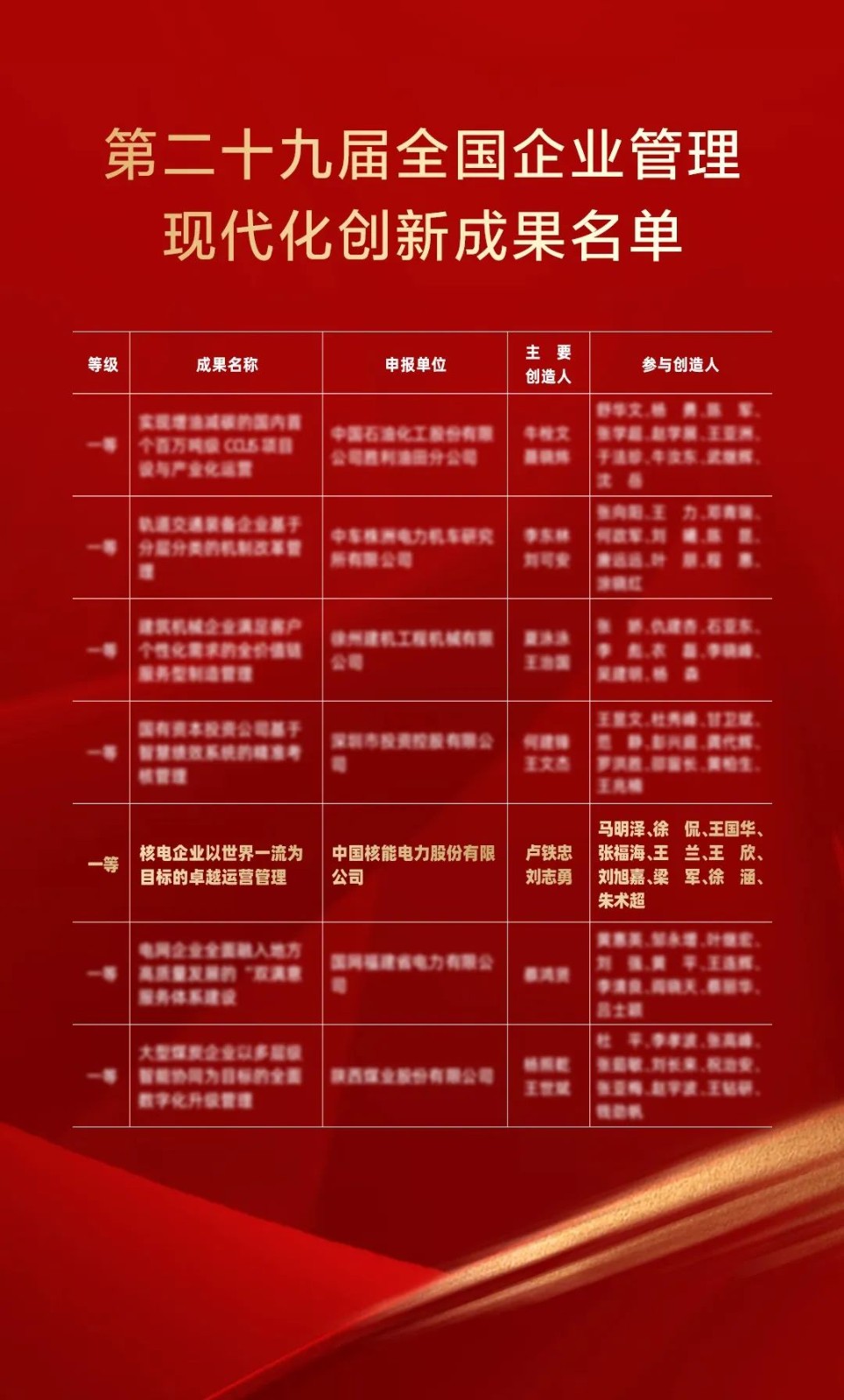 近日,中國(guó)企業(yè)聯(lián)合會(huì)發(fā)布了第二十九屆全國(guó)企業(yè)管理現(xiàn)代化創(chuàng)新成果名單,中國(guó)核電申報(bào)的《核電企業(yè)以世界一流為目標(biāo)的卓越運(yùn)營(yíng)管理》從644項(xiàng)參評(píng)項(xiàng)目中脫穎而出,斬獲全國(guó)企業(yè)管理現(xiàn)代化創(chuàng)新成果一等獎(jiǎng)!