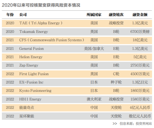 近年來,隨著硬科技投資趨勢熱潮來臨,以及業界對新能源的高度重視,一批商業資本、風險投資開始涌入核聚變能源的創業公司。