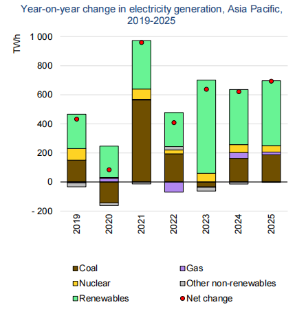 國際能源署預計,到2025年,亞太地區燃煤發電量在總發電量中的占比將降至52%,低碳能源發電量占比將升至38%。2023—2025年,該地區電力需求將以每年4.6%的速度穩步上升,其中66%的增量需求將由可再生能源滿足。